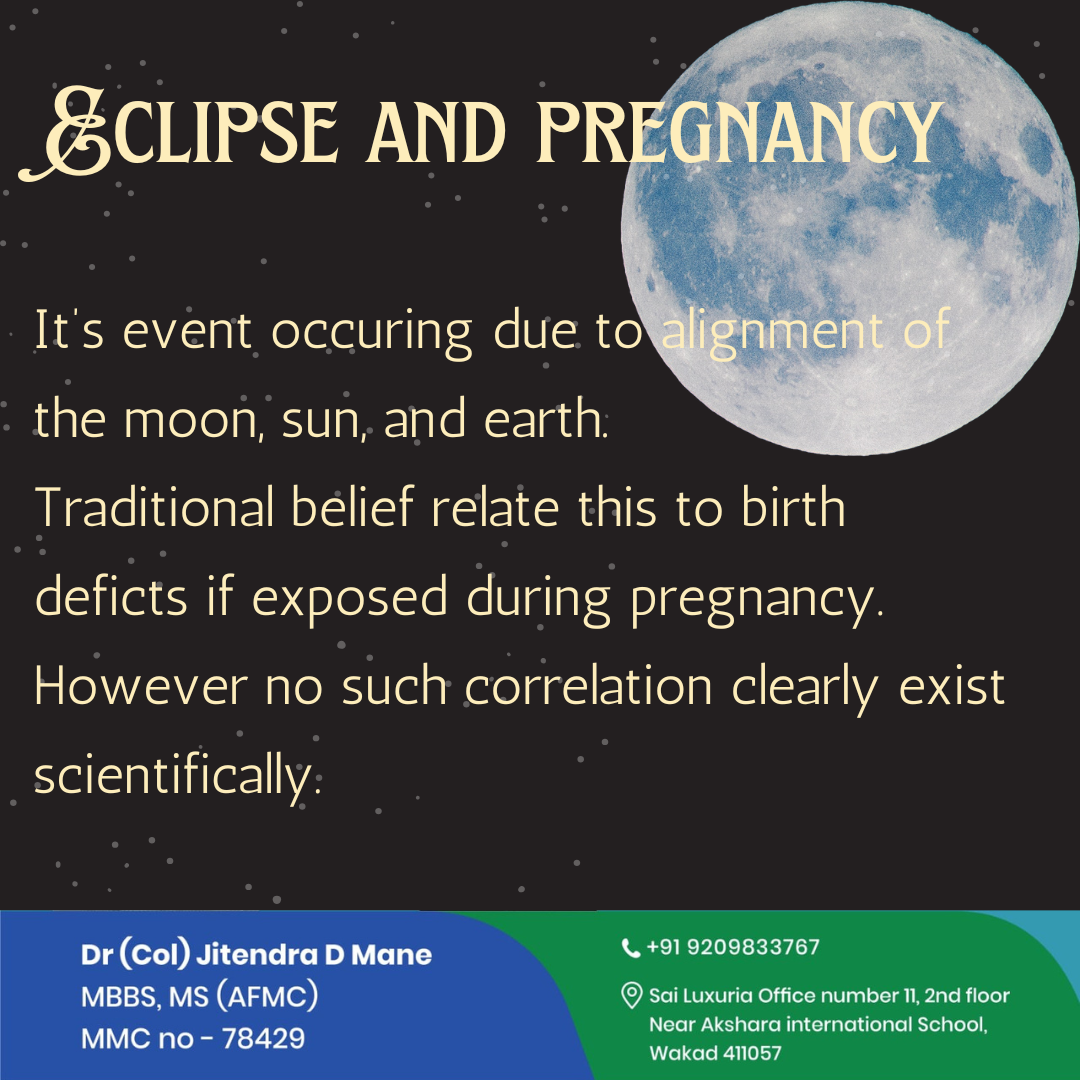 Eclipse an event which occurs due to sun, moon and earth positions. Birth defects are thought to be associated with eclipse when pregnant women are exposed. Scientifically birth defects are usually associated with various medical reasons like genetic reasons, infections, drugs exposure and metabolic causes. There is no clear correlation of birth defects and eclipse